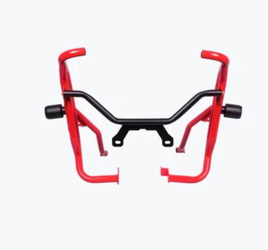 The Legundary Hero Xpulse 210 Xplorer Crash Guard for the Hero X pulse 210  available at Legundary Custom Built is designed to provide robust protection for your motorcycle during off-road adventures and daily commutes. Crafted from high-quality mild steel this crash guard is engineered to absorb and distribute impact forces, safeguarding critical components like the engine radiator and fuel tank in the event of a fall or collision. The guard features a precision engineered design that ensures a perfect fit for the Hero Xpulse210 allowing for easy installation without the need for modifications. Its powder coated finish in Black Red or White not only adds a stylish touch to your bike but also offers resistance against corrosion and wear.