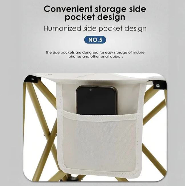Foldable Camping Chair with Side Storage Pocket, Solid Back, Painted Steel Frame, Rotating Hard Floor Chair with Sponge Fill and Oxford Cloth Seat, Easy Wipe Clean, Includes Ottoman, Suitable for Adults at Oktoberfest Events